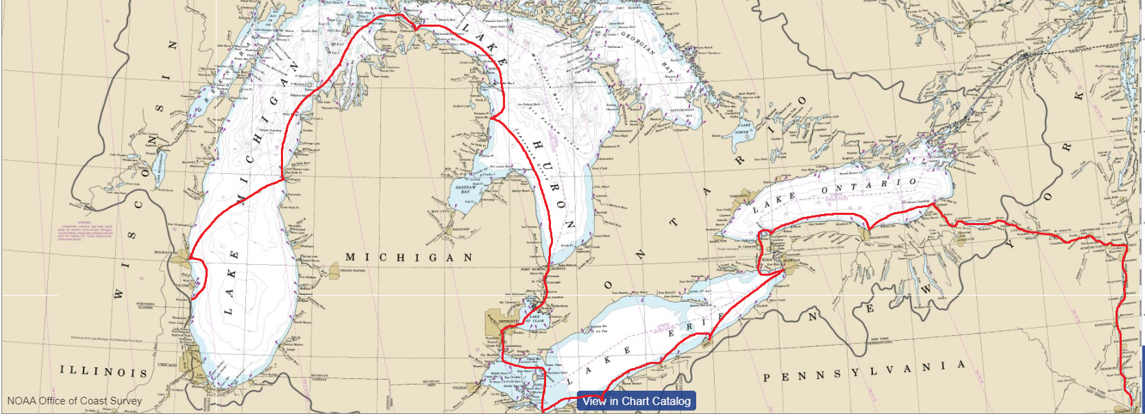After nearly three months of preparation, we were now ready to embark on a journey that would take us through Lake Michigan, the Straights of Mackinac, Lake Huron, the St. Claire River, Lake St. Claire, the Detroit River, Lake Erie, the Welland Canal, Lake Ontario, the Oswego Canal, the Erie Canal, the Hudson River to New York Harbor.