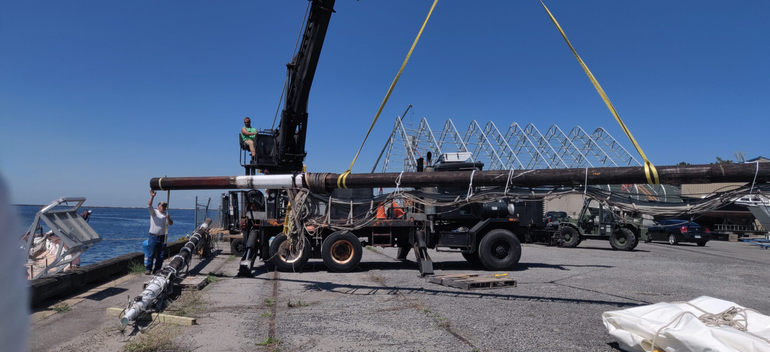 It was partially a testament to what can be accomplished with the right tools and equipment; but mostly it was the amazing expertise of the owner at the Oswego Marina that enabled us to de-step the masts in about 8 hours.