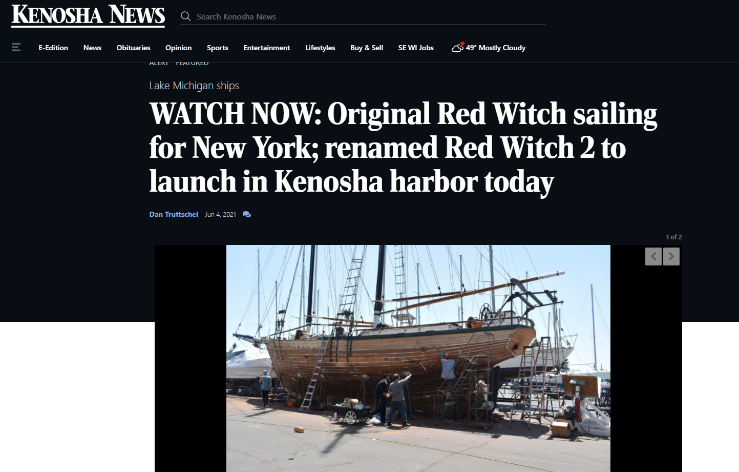 The work crew had the boat ready for launch on June 5, 2021. Another short haul a week later was needed before the wooden hull finally swelled to the point that the boat was no longer taking on water.