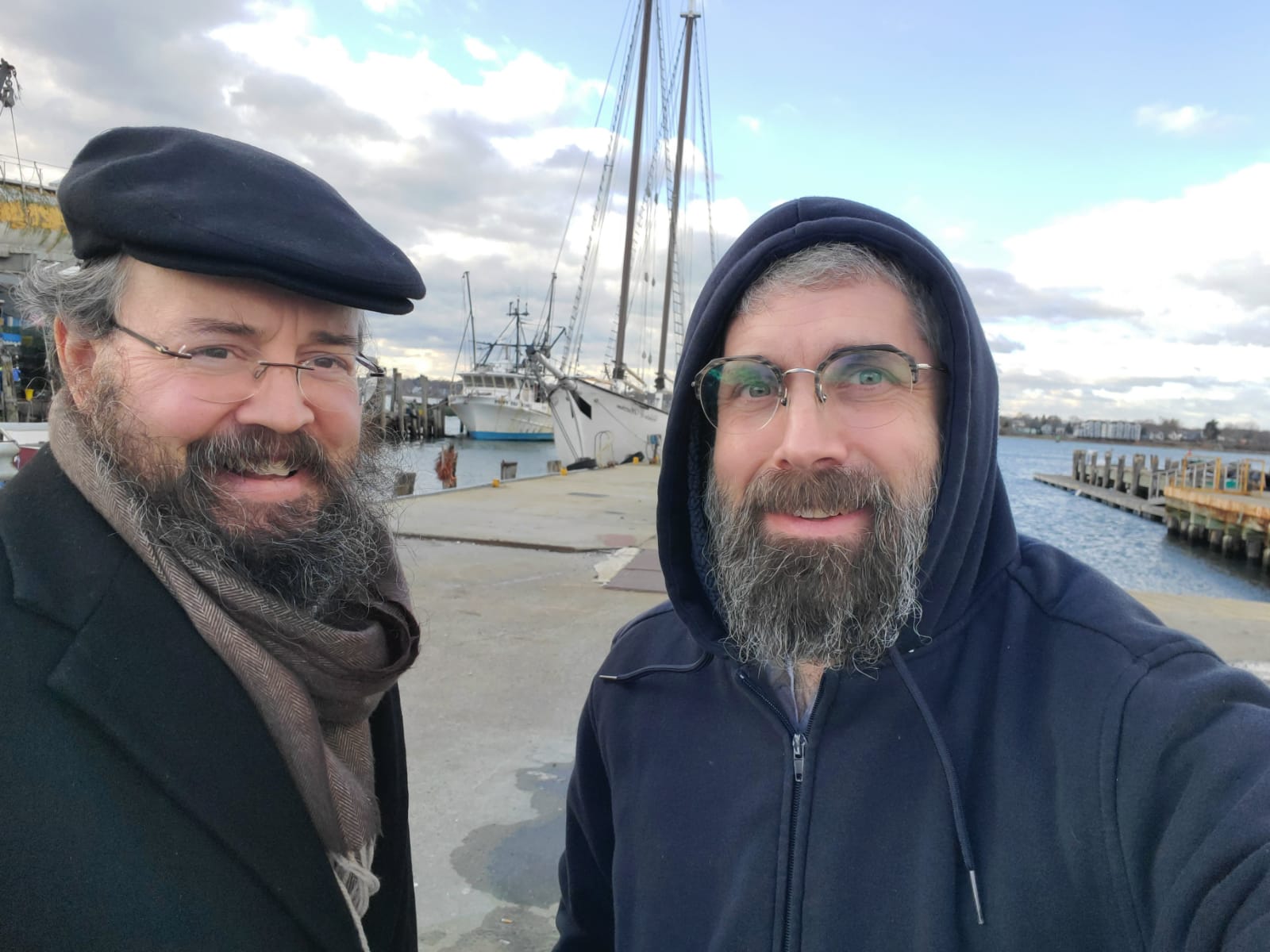 Captain Nesanel with partner Yitzy on the search for a vessel, here pictured in Portland, Maine. Kosher cruises in Manhattan or bust!