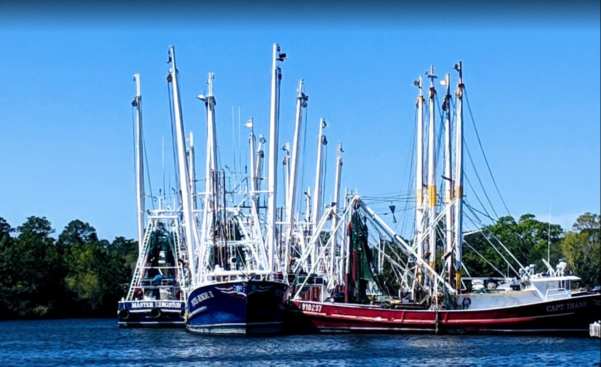 Shrimp trawlers in Bayou LaBatre, Alabama, where the Red Sea was built. With the rig down, the resemblance was clearer.